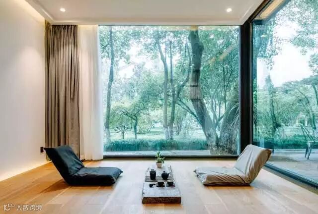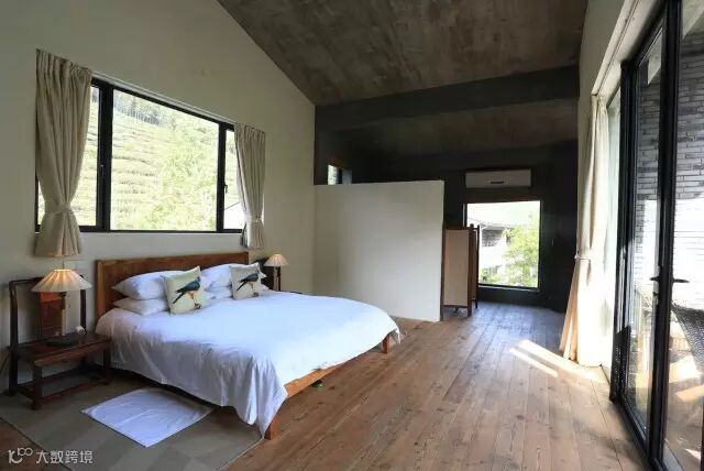 清境原舍倚靠在一座茶山之上,对面就是一片绿色的竹海,敞亮的飘窗和落地窗将自然的风光最大限度的引入到室内,光线极佳。