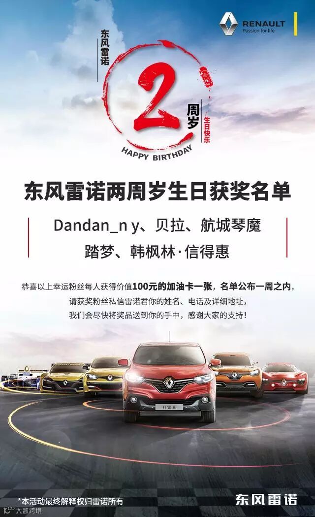 更加感谢大家2年来对东风雷诺的支持!