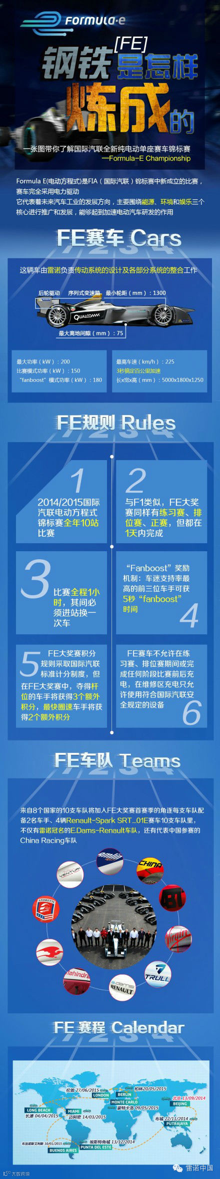 一张图带你了解国际汽联(FIA)全新纯电动单座赛车锦标赛——Formula E Championship!
