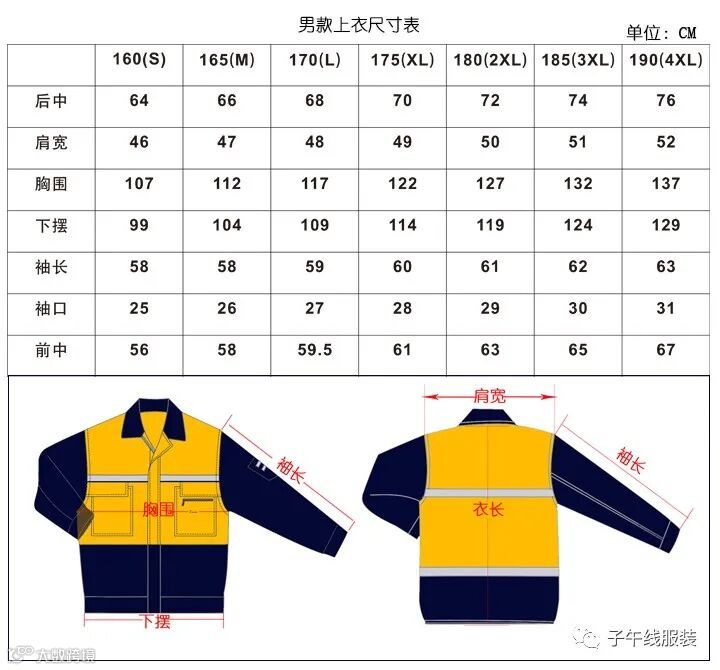 子午线服装工作服的尺寸规格表是我们在订做或选择工作服时必须要了解的。下面子午线小编就给大家详细介绍一下,希望大家在看完之后会选择自己合适的工作服尺码。
