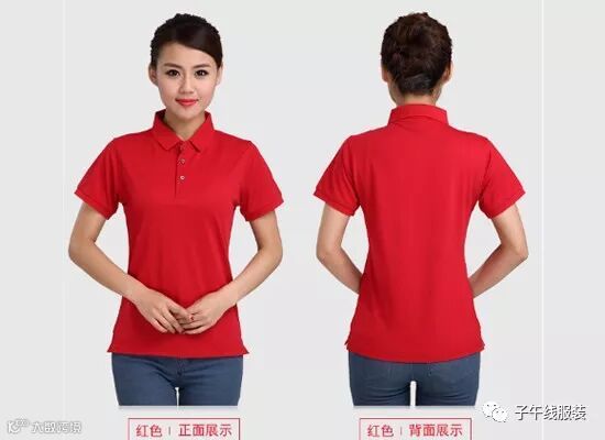 红色POLO衫搭配紧身牛仔裤