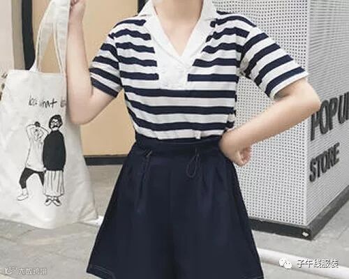 条纹POLO衫搭配阔腿裤