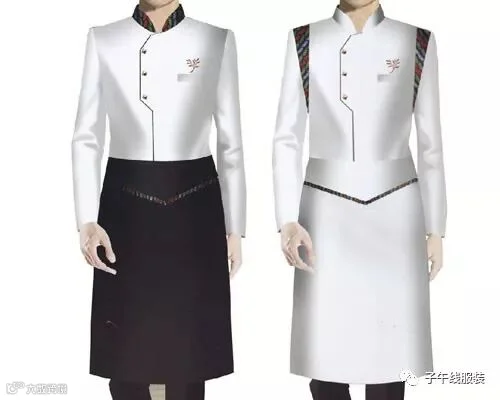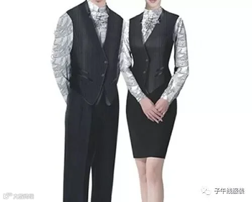 餐饮员工的工作服一般是制服类的套装,配个马甲。
