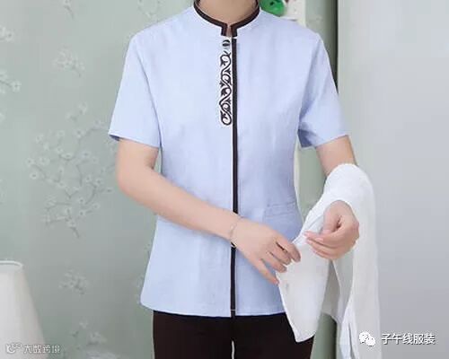第三、客房部的工作服也是酒店品牌的象征代表的是企业的形象,所以在定制的时候通常都会加入酒店相应的元素。做工都比较精细。