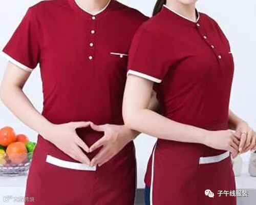 不同的快餐店工作服也不一样。大部分都会根据自己要求或是店面的装潢来定制专业的工作服。快餐店的工作服基本上是以T恤为主,款式上有圆领的也有翻领的。经典款是最适合大众快餐店的工作服T恤款式了。一般的餐饮店面料上会选择纯棉面料或是天竺棉,款式上男款是圆领女款偏U型领。夏天这种款型对厨房工作的员工来讲比较凉快且透气性好。