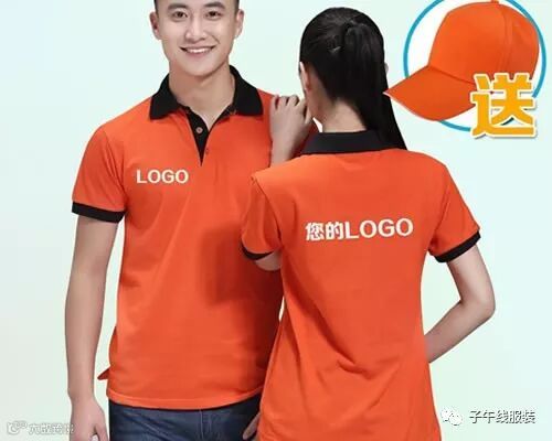 如果是比较高档一点或是连锁类型的快餐店则可以选择品质更好的T恤衫款式。面料可以选择优质高档的奥戴尔,无论是男版还是女版的版型都比较大气,看起来比较高档。款式上也可以做成短袖的翻领T恤,印上公司的LOGO 和图案。