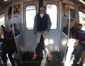 坐地铁千万别靠着车门打瞌睡!