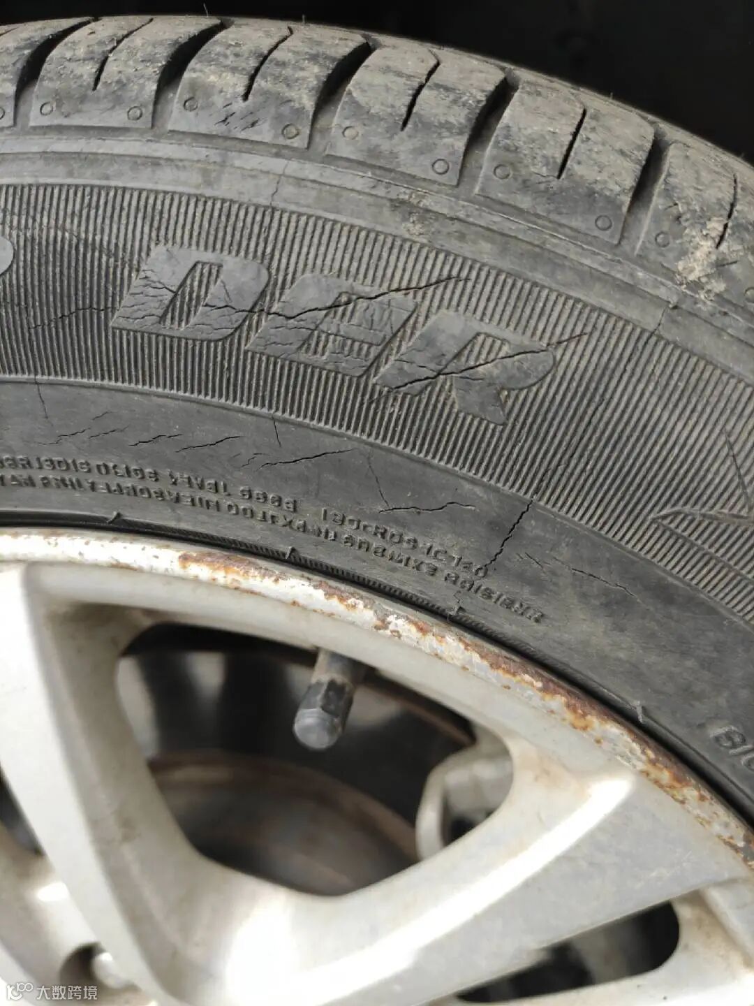 ❸胎侧有鼓包、裂纹、扎伤多次修补