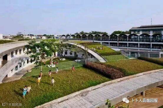 这个设计,让学校内部的庭院成为了儿童安全的游戏空间。而屋顶则开放儿童去体验自然生态、探索植物、学习种粮。