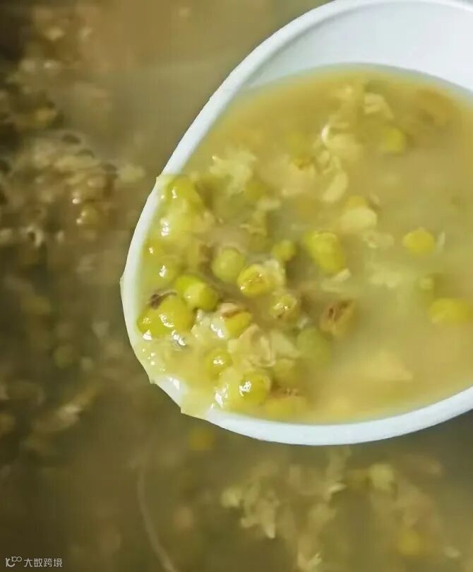 清晨6点,餐厅的师傅便已开始忙碌起来:将清洗干净的绿豆倒入汤锅,再注以清水、白砂糖,大火烧沸后再转以文火慢慢熬制。熬好备凉的绿豆汤再辅以沙冰,便可为一线的“佳”人们的消暑利器了。