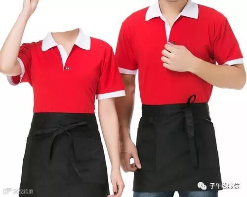 餐厅的服务员,工作服款式多为制服类的套装或是休闲T恤类。