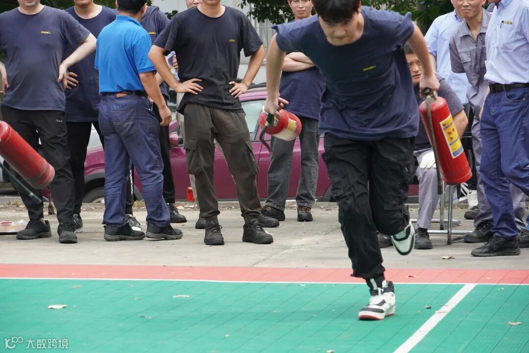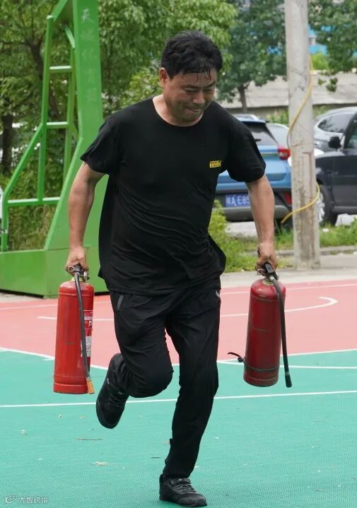 五点式安全带穿戴比赛、伤员转运比赛、携带两瓶4kg灭火器50米跑比赛。