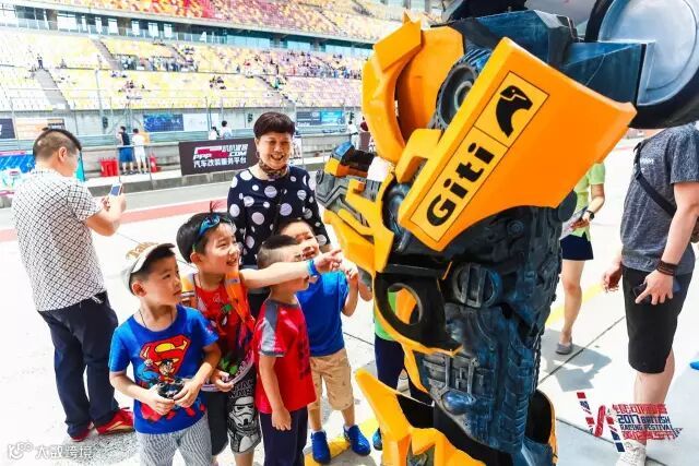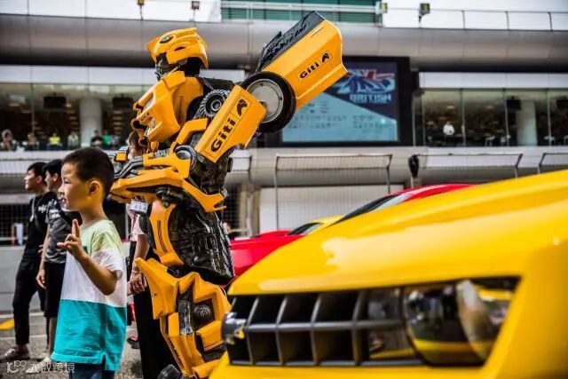"大黄蜂"在赛道旁边引起了小朋友的围观