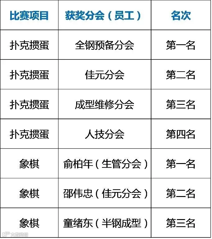 职工棋牌赛获奖名单: