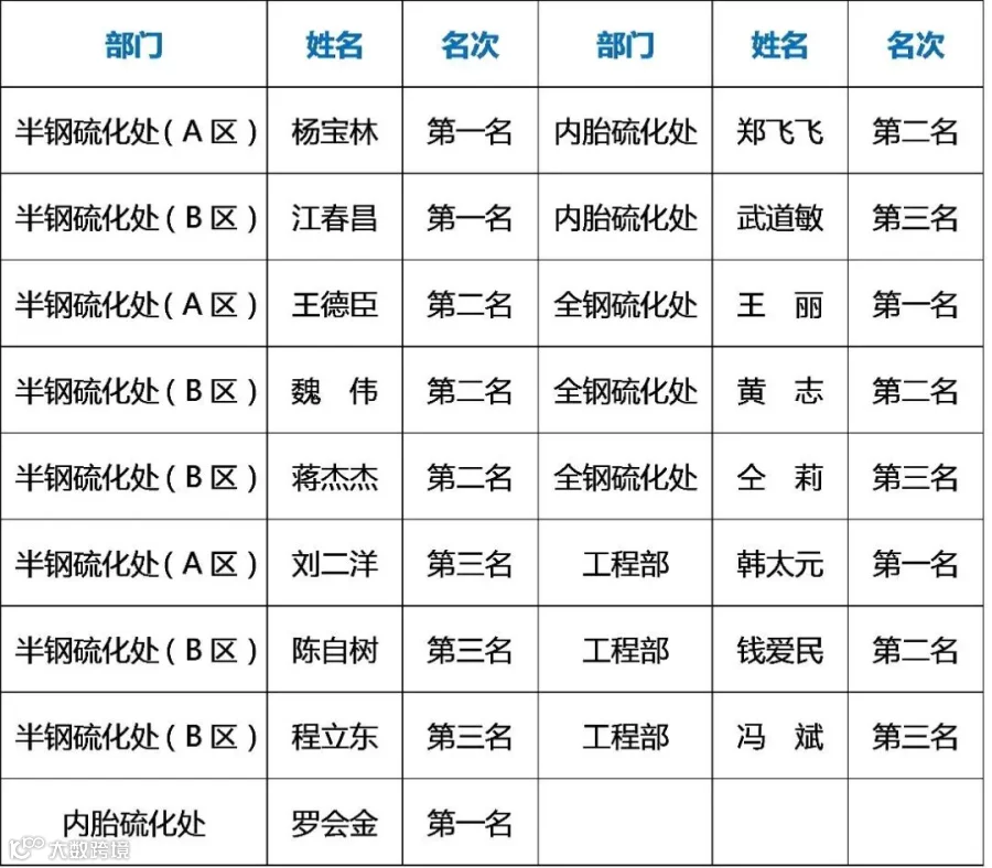 劳动竞赛获奖名单: