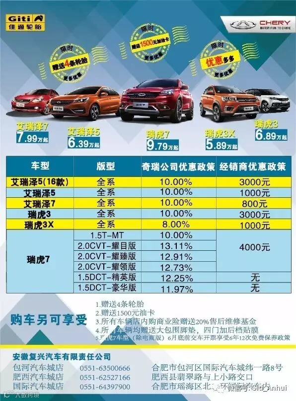 瑞虎7车型(除电商版)6月底前交车开票享受6年12次免费保养政策