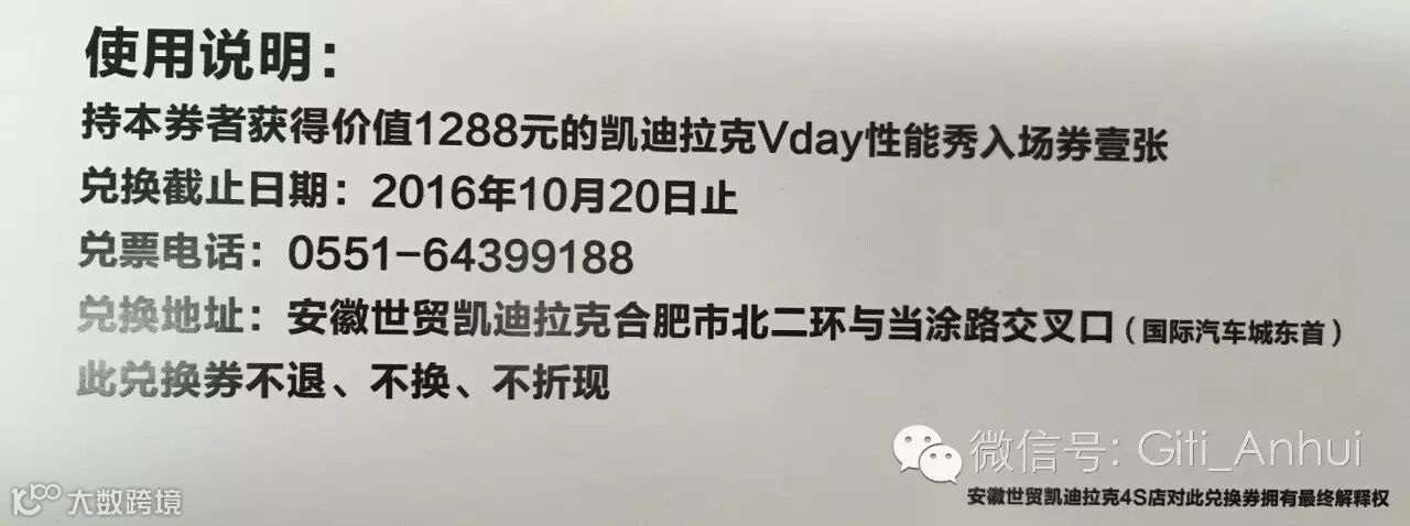 员工凭门票兑换券自行前往安徽世贸凯迪拉克4S店兑换入场券