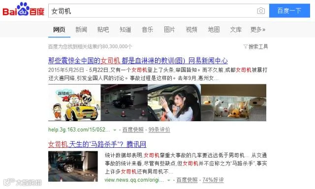 小编手欠,上网搜索了一下“女司机”三个字,结果……