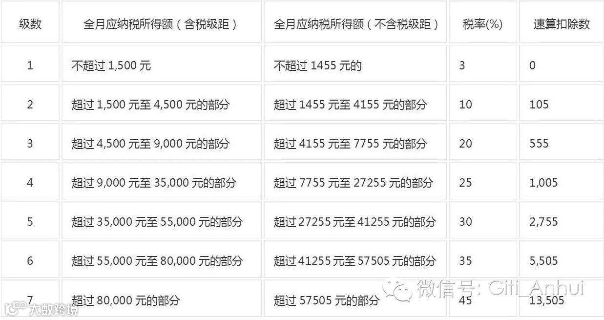 例:1. 如果某人的工资薪金所得扣除个人五险一金收入为5000元,他应缴纳个人所得税为:(5000—3500)×3%-0=45(元)。