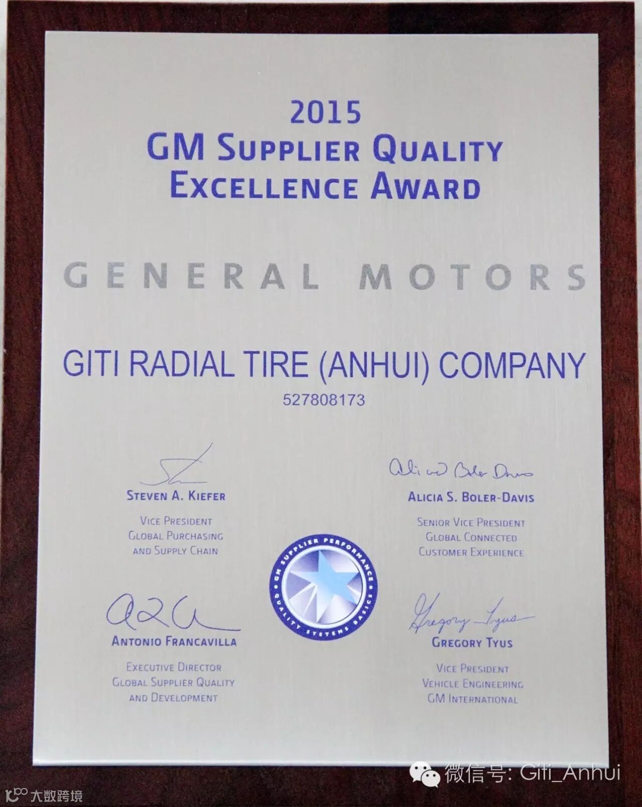 2016年6月29日通用中国在上海举行供应商大会,对2015年表现优异的供应商举行表彰,安徽佳通再次获得年度优秀供应商质量奖(共有13个考核指标)!这一奖项是对向通用汽车提供优质服务并做出重大贡献的全球供应商的高度认可。