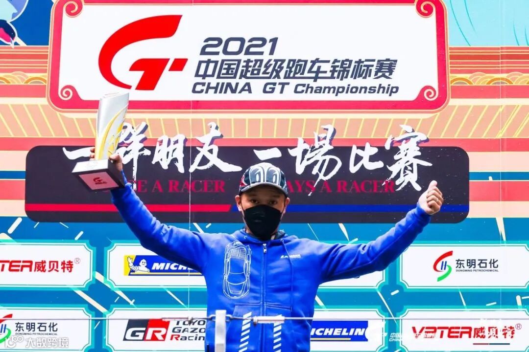 很高兴能参加到这场China GT上海站的比赛中,同时我们也很感谢赛会,因为赛会在疫情环境下克服了许多困难才创造出这样的条件,我们才能参加这场比赛,在这里特别要感谢一下赛会、主办方以及中汽摩联。这个周末其实我们准备得比较匆忙,来到上海之后备战时间并不多。今天发车的时候赛车在起步阶段遇到一点问题,不得不从维修区发车,队友黄智贤跑第一棒。非常幸运的是他稳稳地把车带回来给我,我出发之后发现雨已经停了,路面干了不少。我就按自己的节奏往前追赶,同组别的车组陆续都有失误发生,我就这样很顺利地把车带回来了。