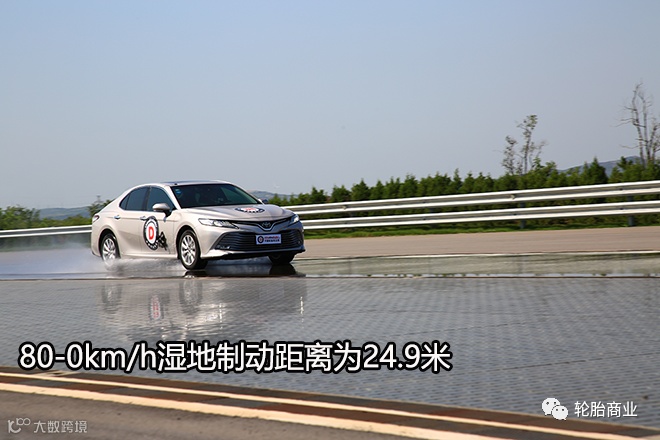 在专用的湿滑的柏油路面上以80km/h的时速紧急制动,水膜覆盖两毫米左右,最大限度的模拟雨天车辆紧急制动的情况。