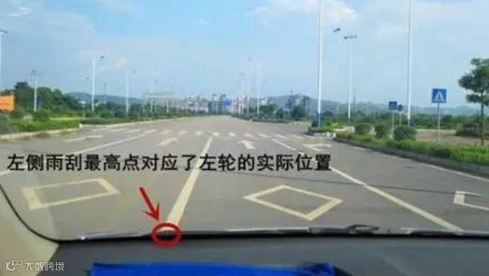 ,当驾车行驶时,驾驶员的视线通过该点所看到的地面,就是左轮胎会经过的位置。