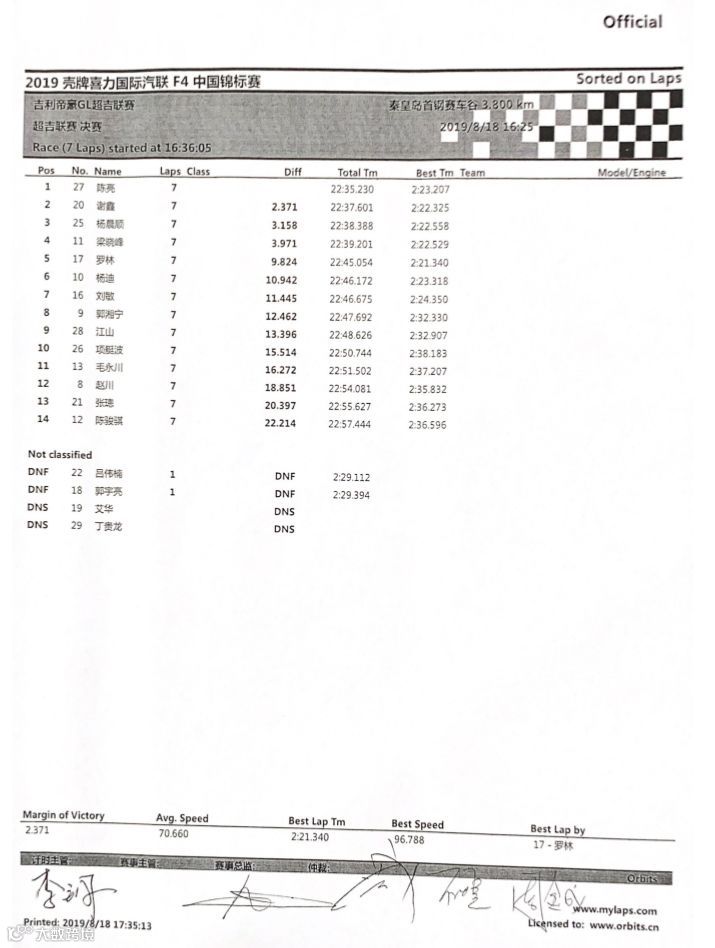 最终2019吉利帝豪GL超吉联赛秦皇岛站决赛在安全车的带领下结束,陈亮夺冠,谢鑫和