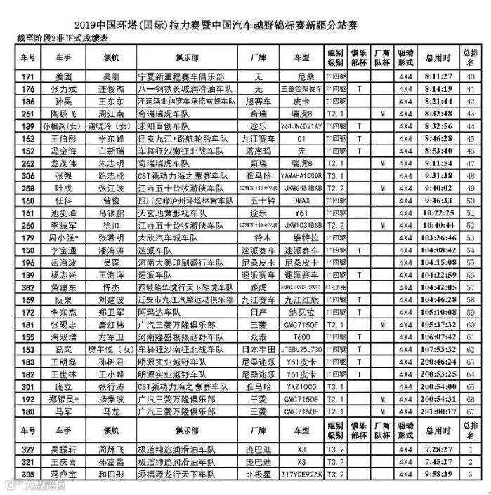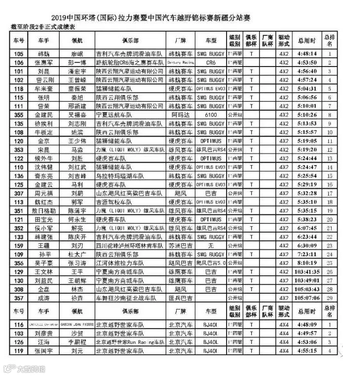 四驱方面,龙行天下车队的车手王翔和领航员杨涛用时2小时32分47秒,位列第五名,紧随其后的是迁安九江路航轮胎车队的车手李爱东和领航员王翼荣以2小时38分23秒的成绩完成比赛。