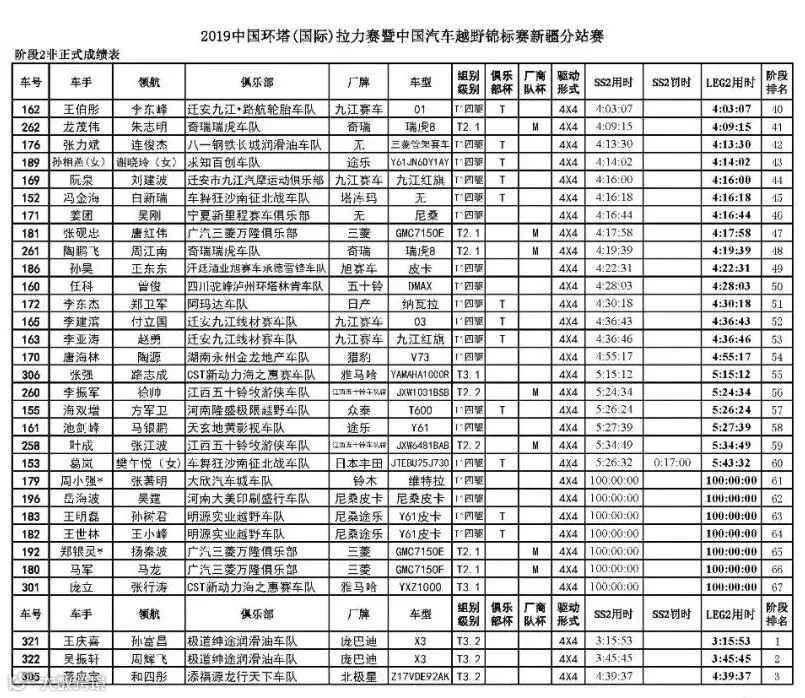 由于比赛仅仅进行了两个赛段,第一名和第十名的车手之间也没超过三十分钟的差距,比赛还存有很多的变数。