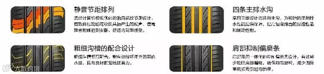 花纹:轮胎花纹间隙和轮胎四周的空气流动。当轮胎高速滚动时,轮胎会变形,使得轮胎花纹与路面之间的空气连续“压挤释放”,空气会迸发出噪声。
