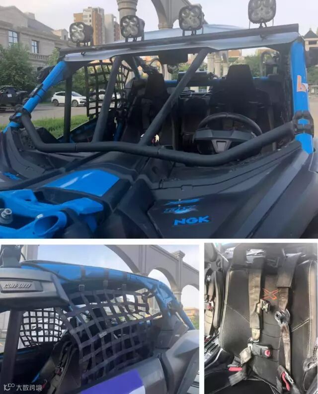 - 挑战UTV组车辆,必须加装防护网,网眼最小尺寸:25*25毫米,网眼最大尺寸60*60毫米;必须加装四点安全带(如图);