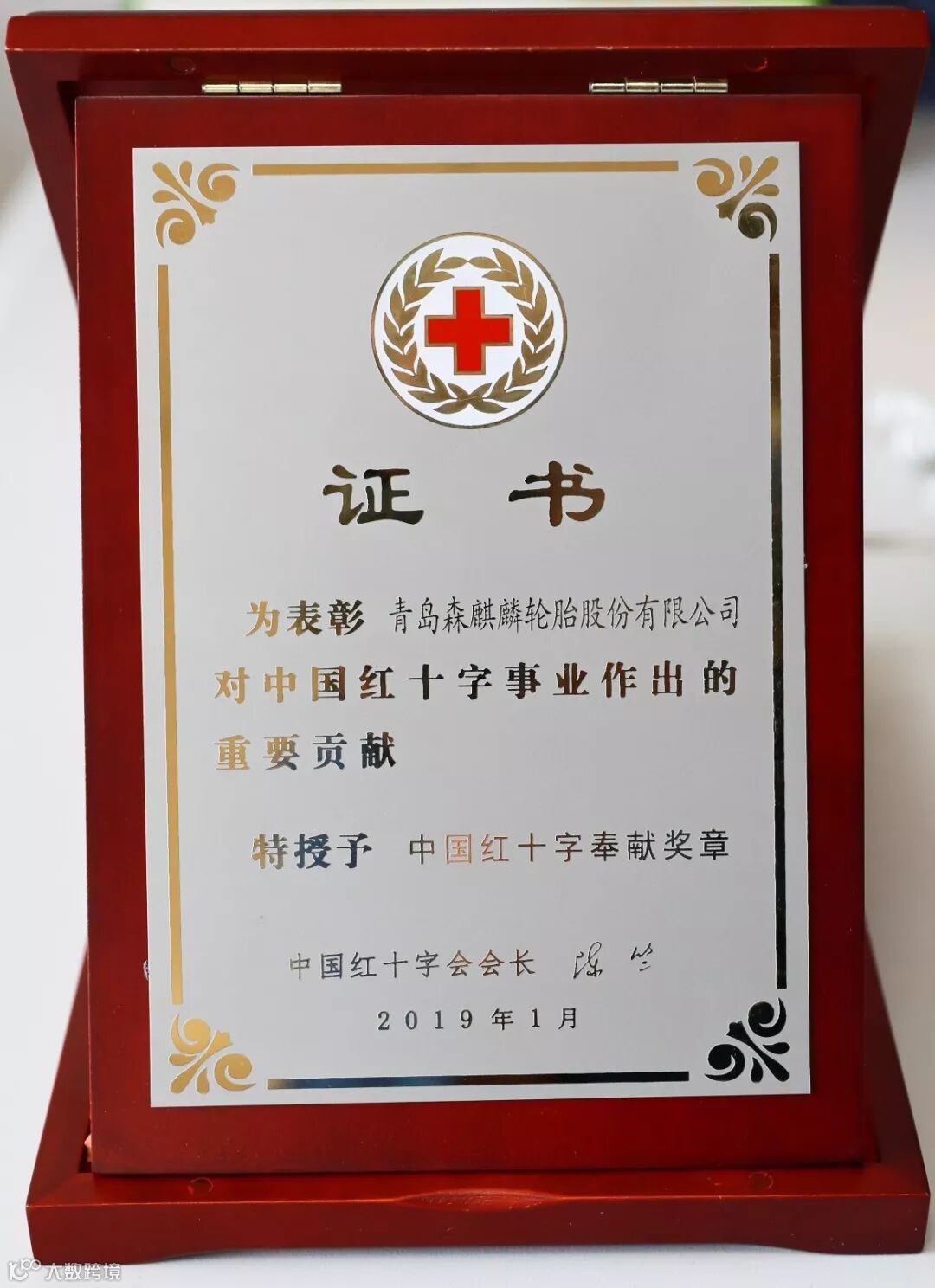 2019年2月22日,贵州省红十字会第四届理事会第四次会议在贵阳召开。会中,为表彰青岛森麒麟轮胎股份有限公司长期以来在社会公益、慈善事业等方面所作出的贡献,中国红十字会特授予青岛森麒麟轮胎股份有限公司‘中国红十字会奉献奖章’。