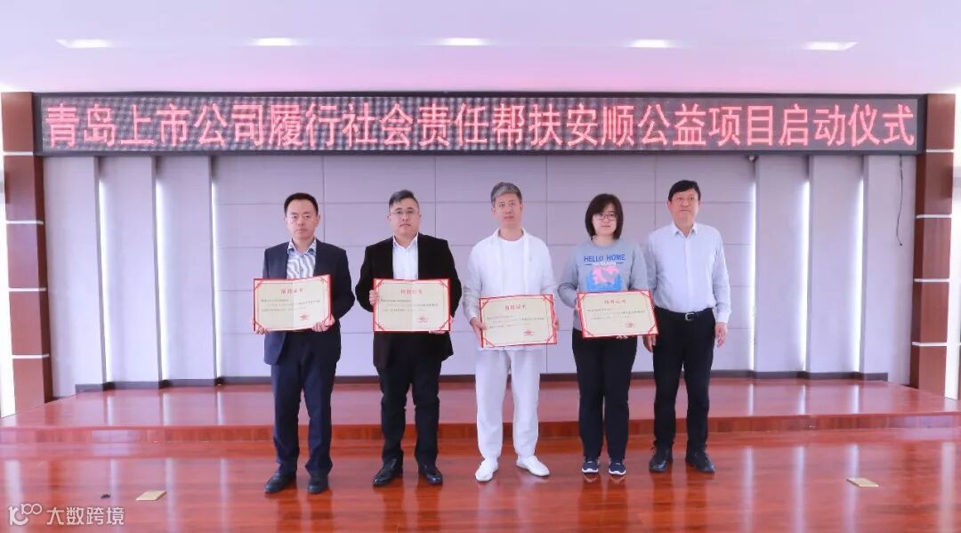 青岛森麒麟轮胎股份有限公司、赛轮金宇集团股份有限公司、青岛港国际股份有限公司、民生控股有限公司、软控股份有限公司、山东省中鲁远洋渔业股份有限公司、青岛伟隆阀门股份有限公司、青岛东方铁塔股份有限公司、青岛金王应用化学股份有限公司、海联金汇科技股份有限公司、青岛城市传媒股份有限公司、青岛东软载波科技股份有限公司共12家青岛上市和拟上市企业共捐助安顺市16个社会公益项目共计619万元。