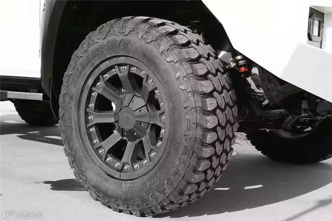 装配18寸PRO COMP 轮毂,配备地表最强的路航CLX-9 MT 285/65R18轮胎,抓地性、耐磨性极强!适用于全地形越野模式!从而使车辆通过性更完美!