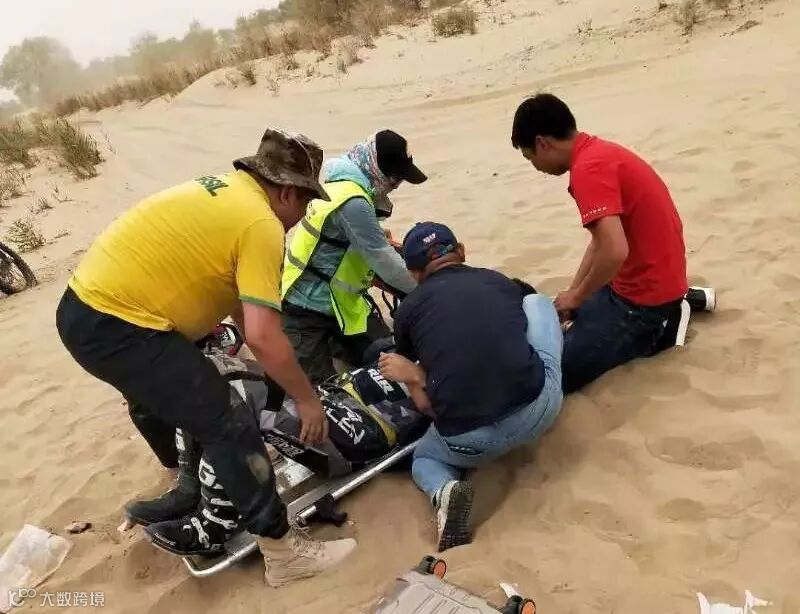 “发现有摩托车手摔车,马上告诉车手将车停在他的前面,防止后面赛车走这边的路线,下车查看发现是赵宏毅,先询问,他还算清醒,我们没有马上按红色键,考虑车手休息一下能否跑到终点,毕竟还有二十公里冲刺。几分钟后赵宏毅觉得自己状况不好,我们替他按键,联系赛事主管安排救援,一直到救援到达才离开,停留四十多分钟,”杨涛回顾当时的情况时说道。