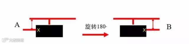 测量两个前轮上该点的距离,记录数值A;将轮胎转动180°,使测量点转到后方,再测量该量点距离,记录数值B。