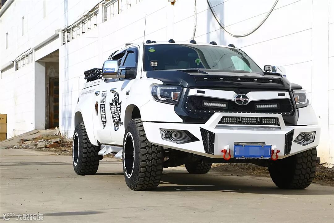 当然,诸如前杠上的绞盘、射灯等必备野外辅助设备一个也不能少。皮卡的改装一直有一个特点,就是改完了这里,那里不改,就会显得很不协调。