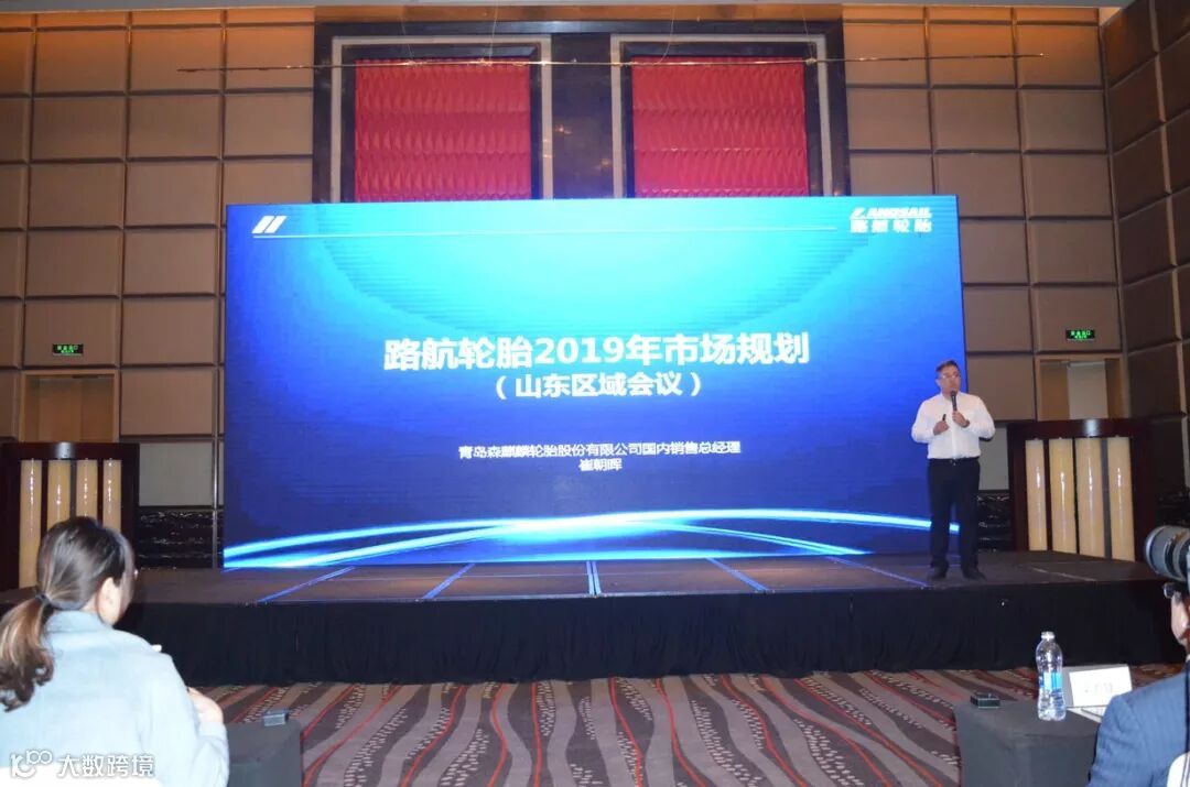 随后,路航轮胎(青岛森麒麟轮胎股份有限公司)国内销售总经理崔朝晖先生上台,向所有来宾介绍了路航轮胎品牌的发展历史,未来规划及新品上市计划,听后台下所有零售商朋友都激动不已,纷纷对路航轮胎品牌的发展大加赞赏,并对路航轮胎未来的销售充满了信心。