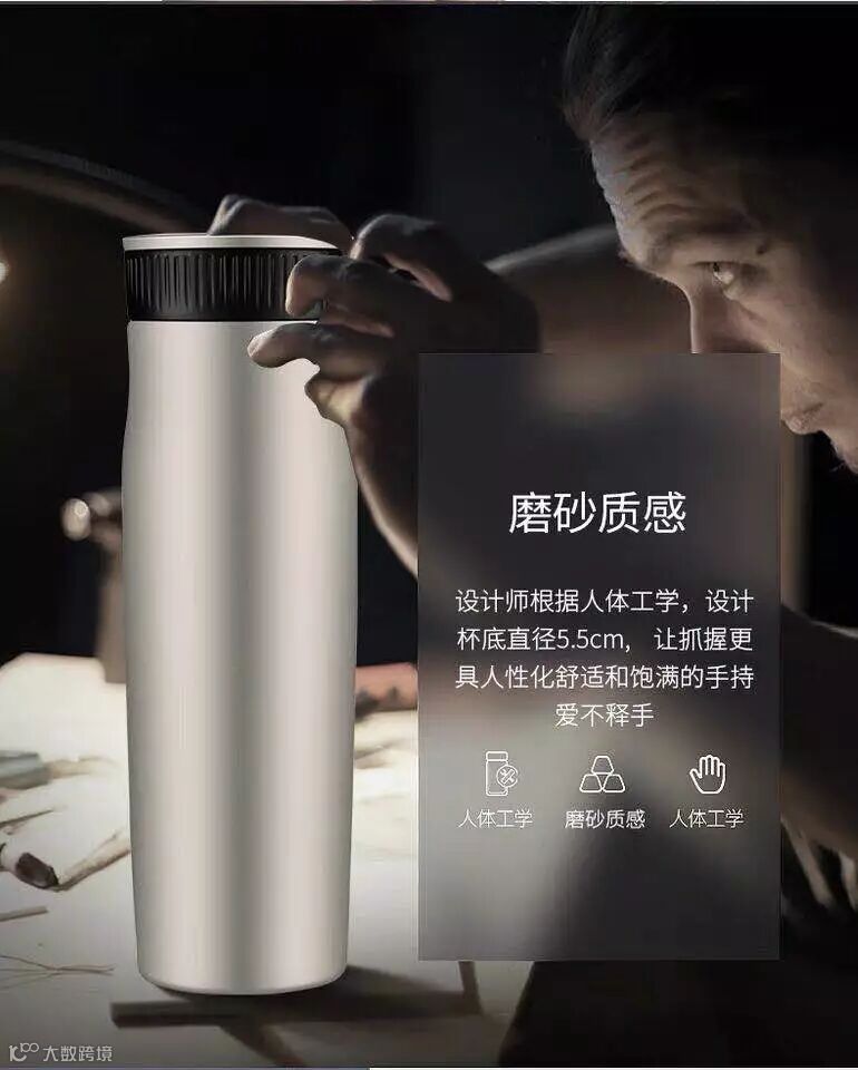 精选于材,健康到可以植入人体的材料钛,全钛真空保温杯,精修于心,一体拉伸成型,无缝衔接,拿握更舒服,杯盖凹陷感独特设计,时尚与技术的完美结合。