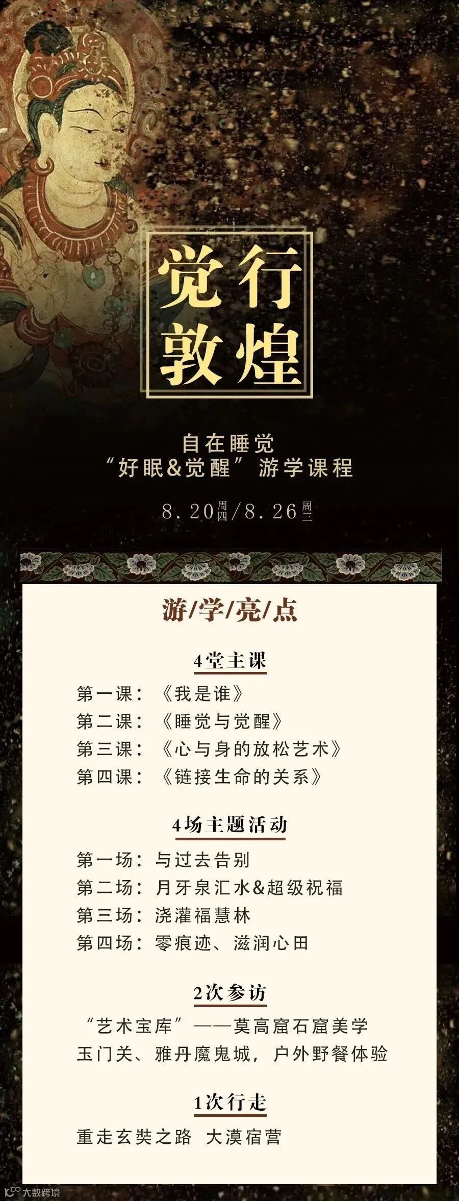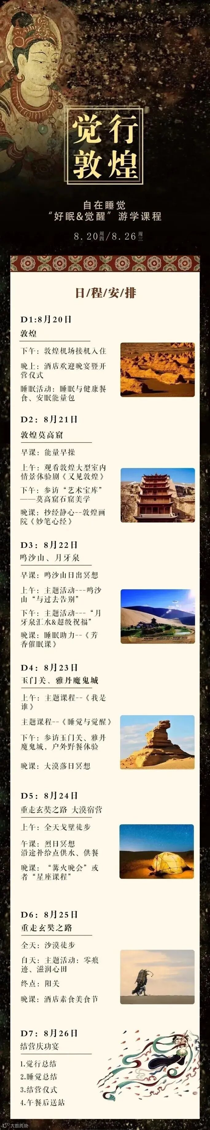在敦煌,这个承载着千年文化、历史、宗教的古城,你走过的每一步,看过的每一处风景,和老师的每一次对话,亲历的每一场主题课程/活动,一定能帮你找回重新出发的勇气。