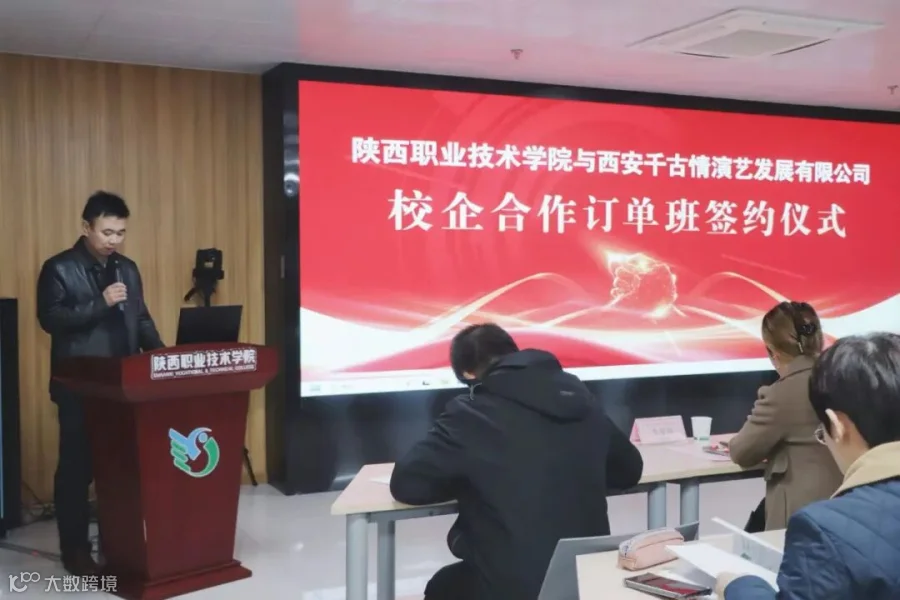 为深化产教融合,创新人才培养模式,11月6日,陕西职业技术学院与西安千古情景区举行了校企合作订单班签约仪式。校领导、企业领导及订单班全体学生共同出席。