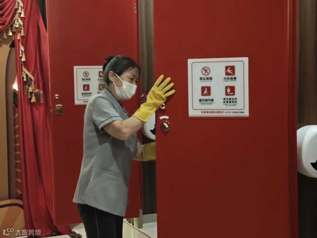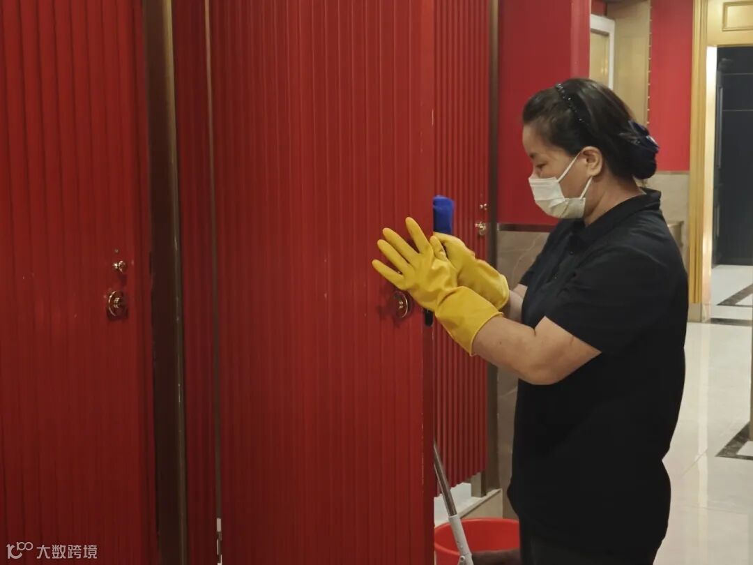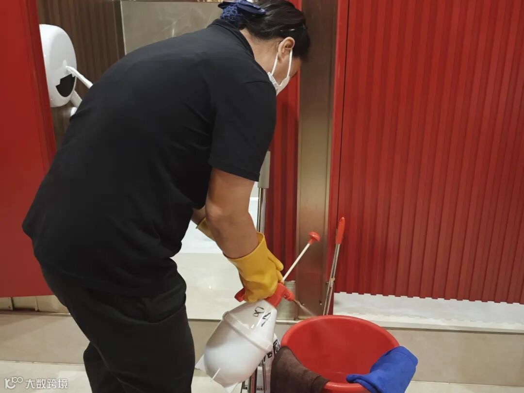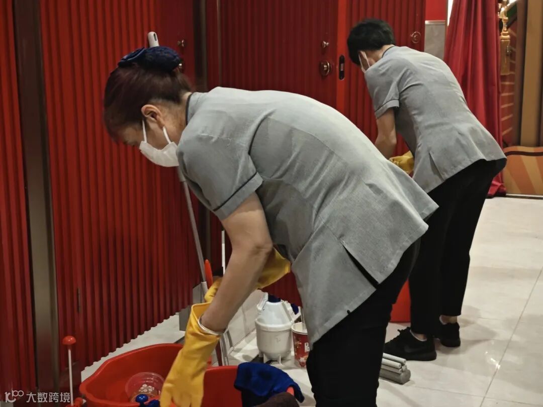 保洁组通过日常清洁流程的实操考核,展现了规范化的作业标准。