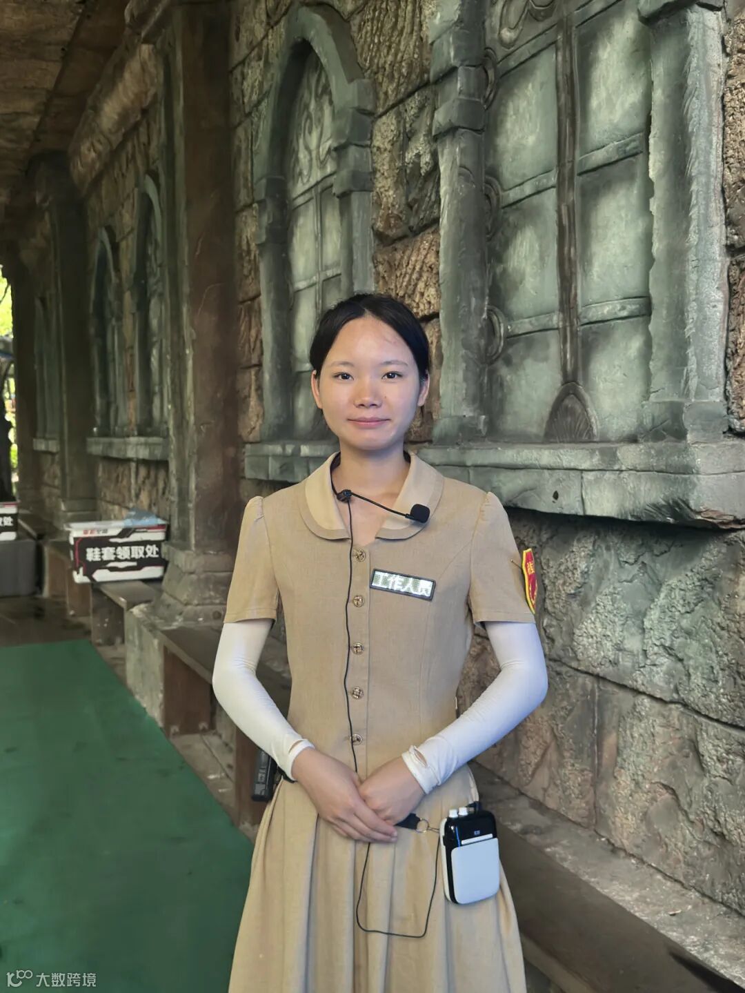 她与游客互动时展现出极强的亲和力与应变能力,主动关怀每位观众的需求,用心对待每一次演出。