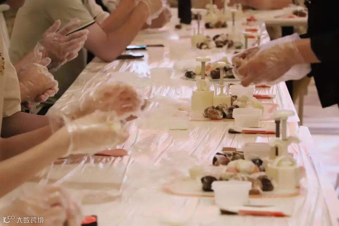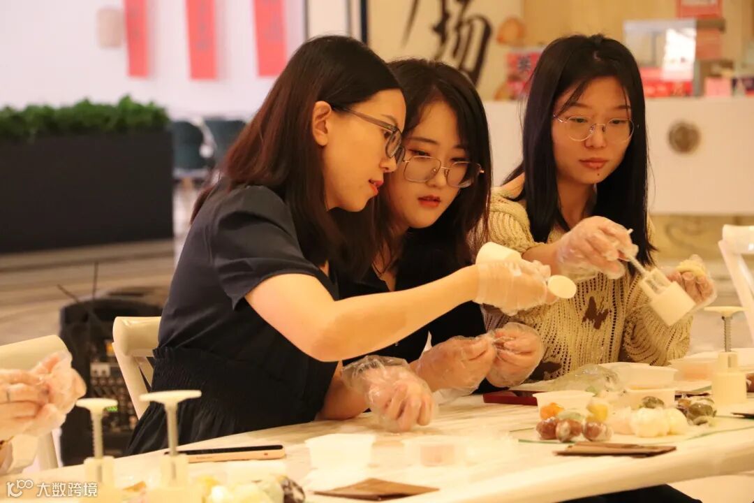 在专业糕点老师的指导下,从压皮到包馅,再到最后的压模,每一步都环环相扣,紧密相连。制作过程中,大家相互交流心得,分享技巧,欢声笑语回荡在活动现场,营造出一片其乐融融的氛围。