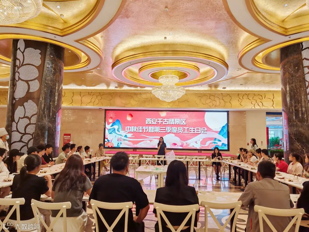 别过夏花的绚烂,走进秋叶的浪漫。在这个阳光温和、微风拂面的美好日子里,即将来临的中秋佳节与西安千古情景区第三季度员工生日会不期而遇,我们在此齐聚一堂,共度团圆时光,共庆生辰佳节。