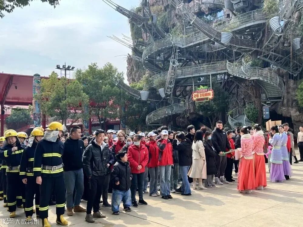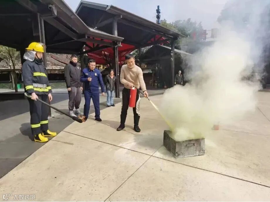 景区开展了消防应急疏散演练活动,模拟室内、剧院后台发现火情,进行现场疏散及救援。整个疏散和救援过程做到了有条不紊、各尽其责。