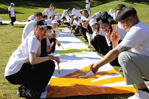 团队精神化作五彩斑斓的色彩在纸上流淌