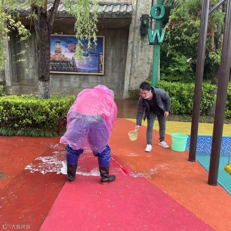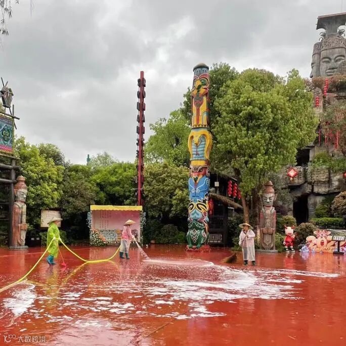 景区全体员工齐心协力,清扫、清洗园区,并做好景区的消毒杀毒工作,通过双手让景区焕然一新。