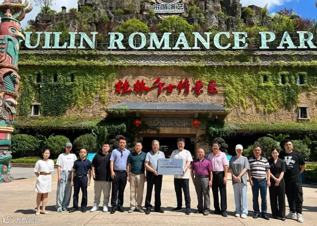 7月22日,桂林千古情景区与广西师范大学的实践教学基地签约授牌仪式在桂林千古情景区举行。广西师范大学党委常委、副校长苏桂发、校友工作办公室副主任陈建光、创新创业学院副院长罗元、历史文化与旅游学院副院长蓝武、音乐学院副院长刘华清、美术学院副院长刘宪标等一行及宋城演艺副总裁兼桂林千古情景区总经理郑琪、景区相关部门负责人共同出席本次授牌仪式。